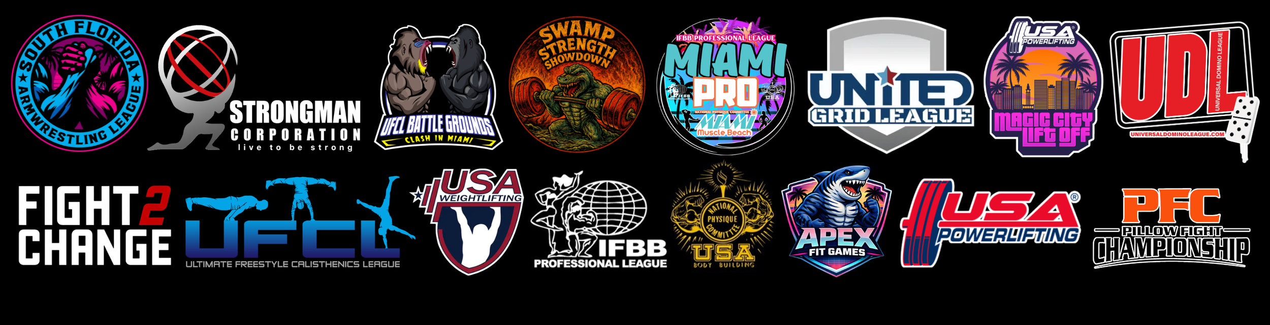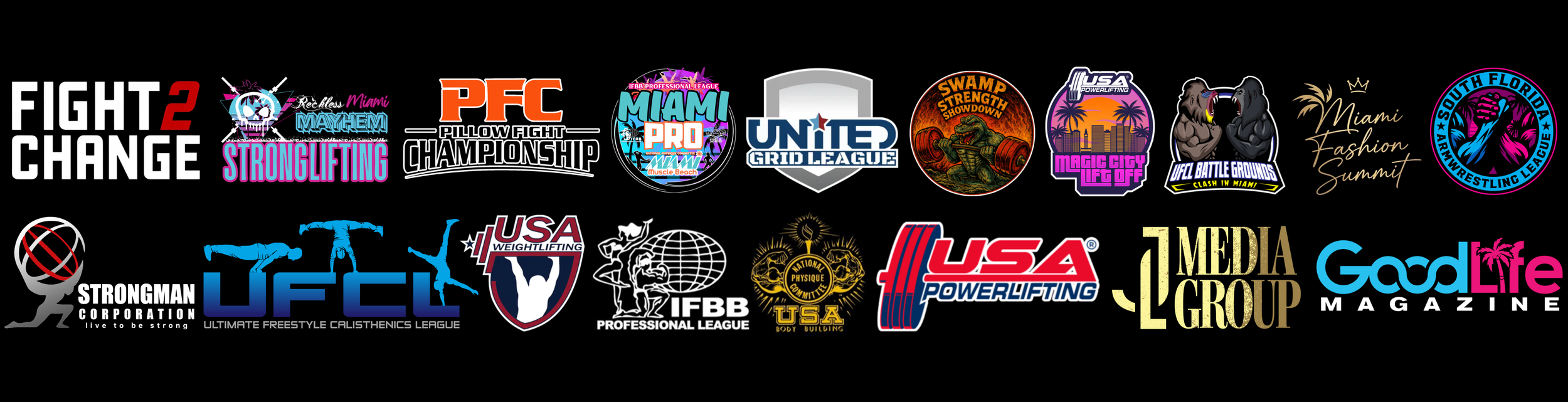 The Miami International Fitness Expo (M.I.F.E) is home OF the IFBB Miami Pro, an International Federation of Body Builders (IFBB) Pro Olympia Qualifier, and NPC Miami Muscle Beach, a National Physique Committee (NPC) National Qualifier. The M.I.F.E is also host to BATTLEGROUNDS: Clash In Miami in Calisthenics (UFCL), the MAGIC CITY LIFT-OFF (USAPL NATIONAL QUALIFIER), THE UNITED GRID LEAGUE, fight2change, SOUTH FLORIDA ARM WRESTLING, the SWAMP STRENGTH SHOWDOWN (uSAW NATIONAL QUALIFIER) IN OLYMPIC WEIGHTLIFTING, reckless’ miami mayhem stronglifting, STRONGMAN CORPORATION’s PRO EVENT, PFC PILLOW FIGHTING, the miami fashion summit, protraining equipment OPEN GYM PLUS more!