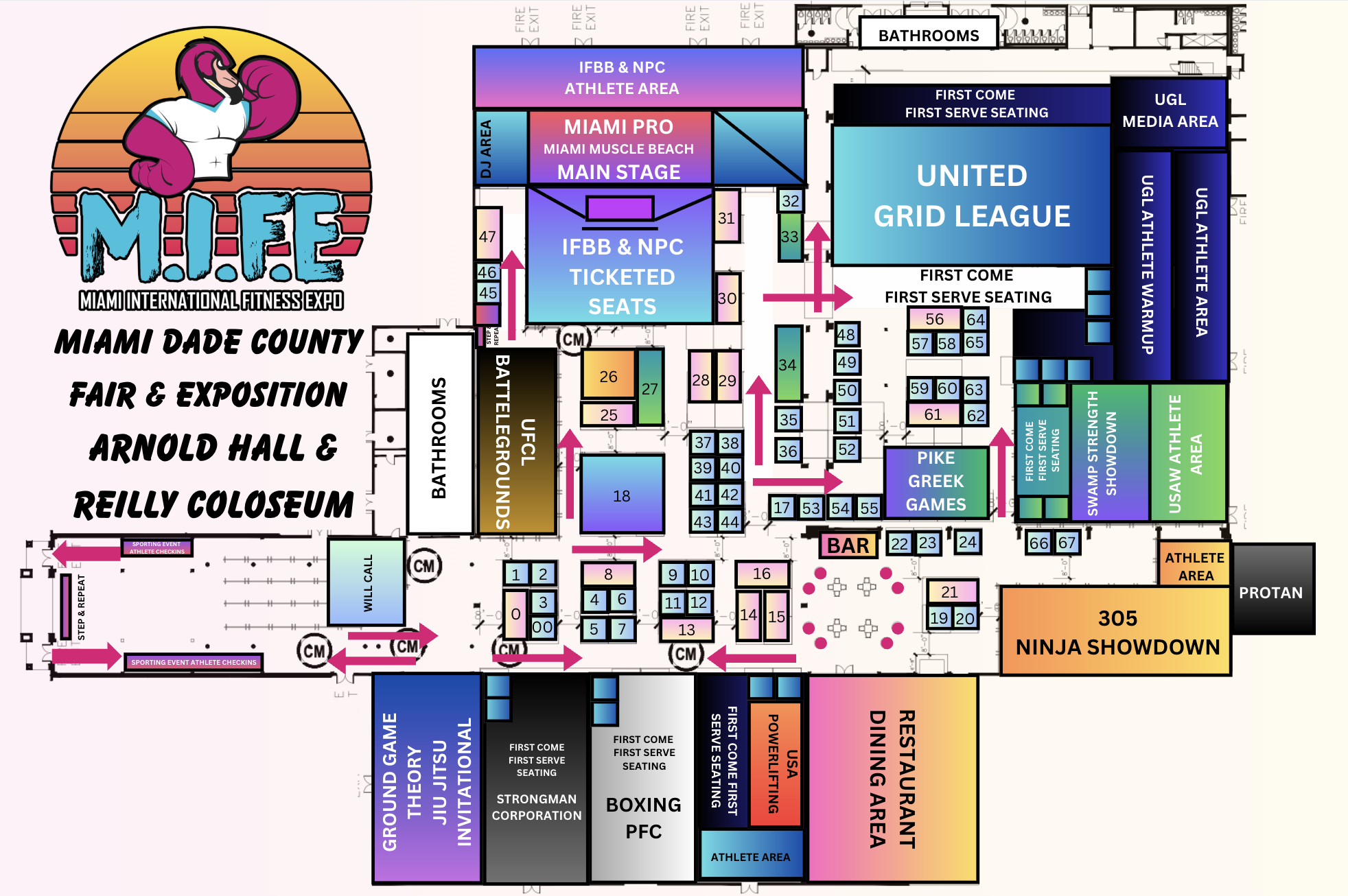 miami muscle beach pump up sponsor (200 sqft) plus 100 sqft in pump area to directly engage athletes with your pump up equipment